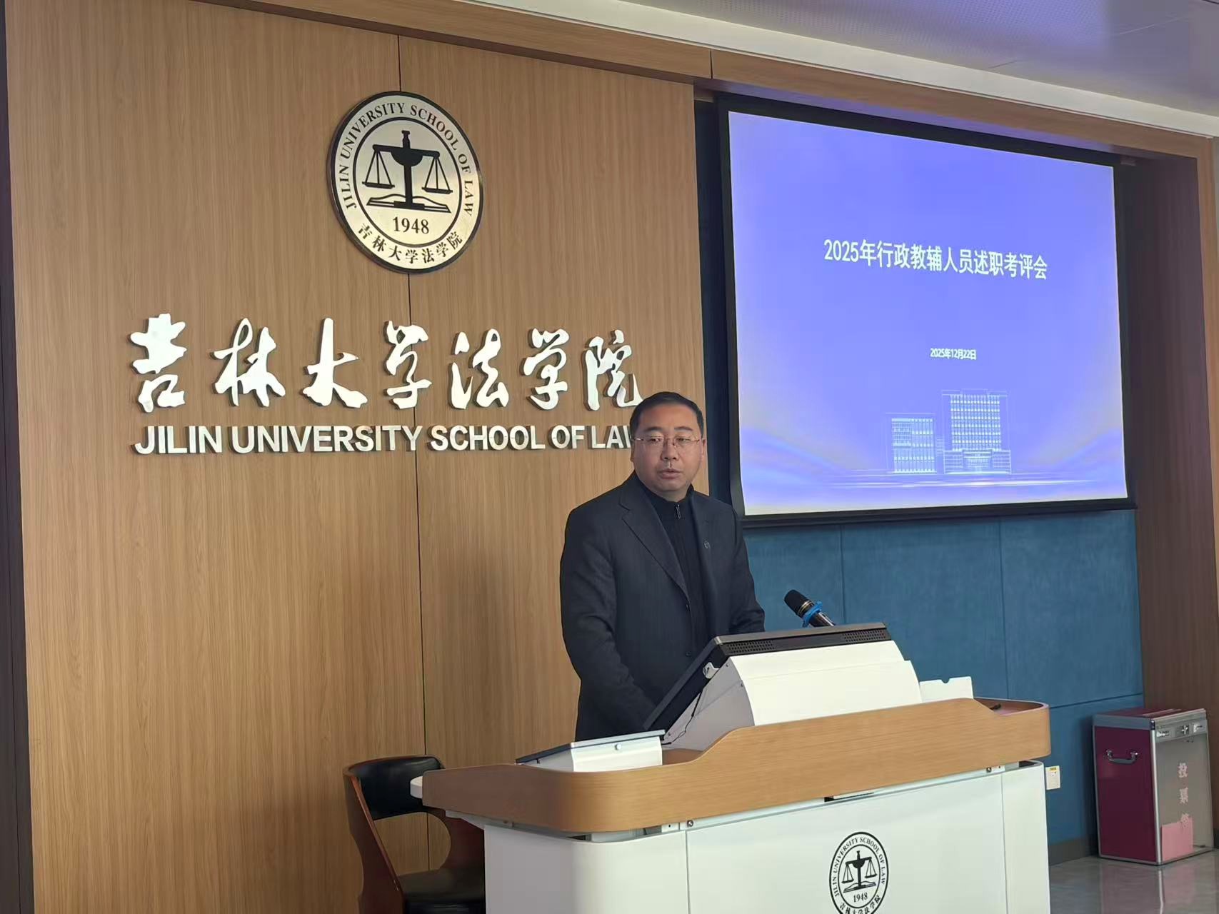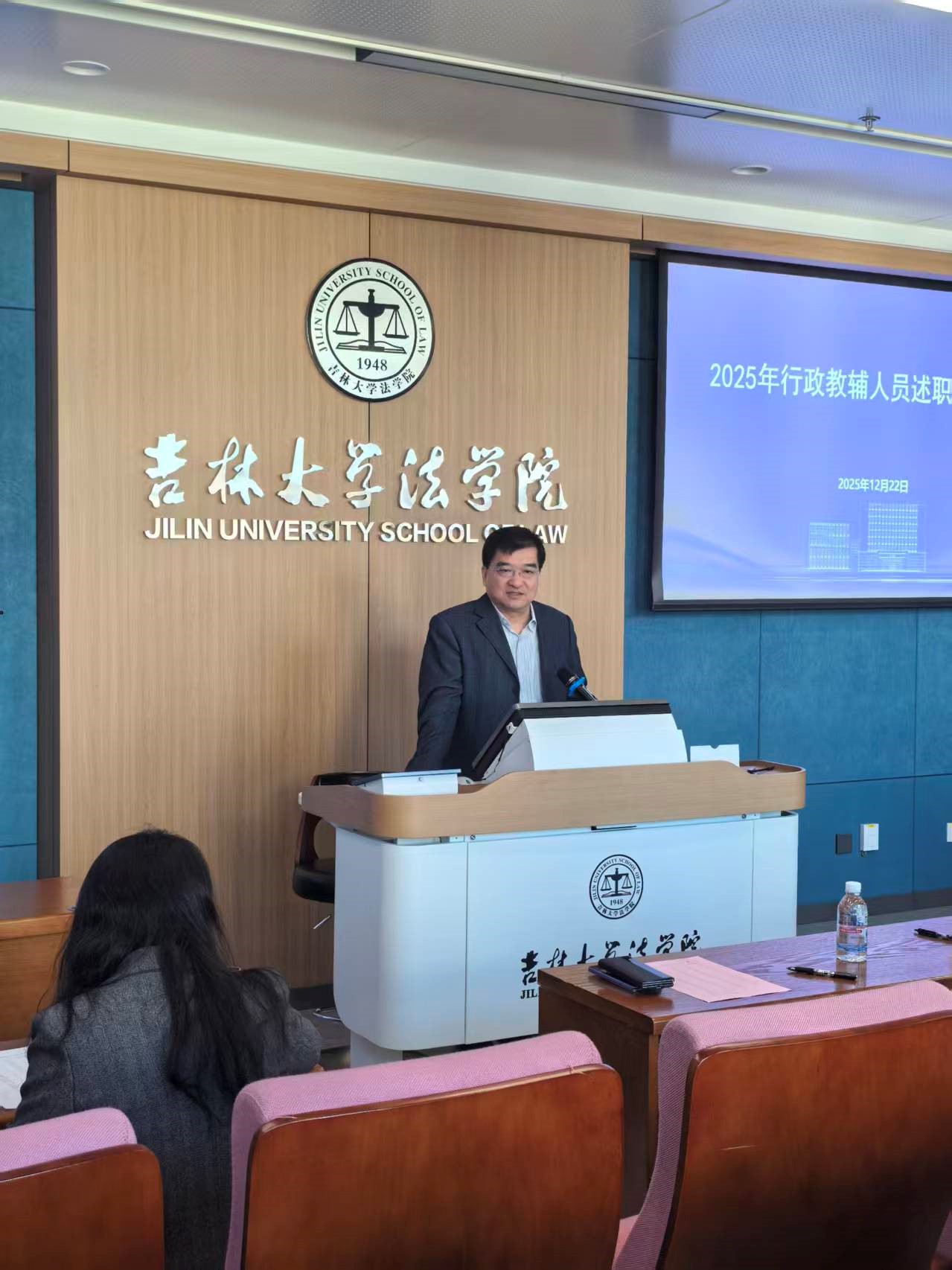 为进一步强化行政教辅队伍建设,提升学院管理服务与教学保障水平,2025年12月22日上午,法学院召开2025年度行政教辅人员述职总结会。会议由学院副院长吕欣主持,领导班子和全体行政教辅人员参加会议。