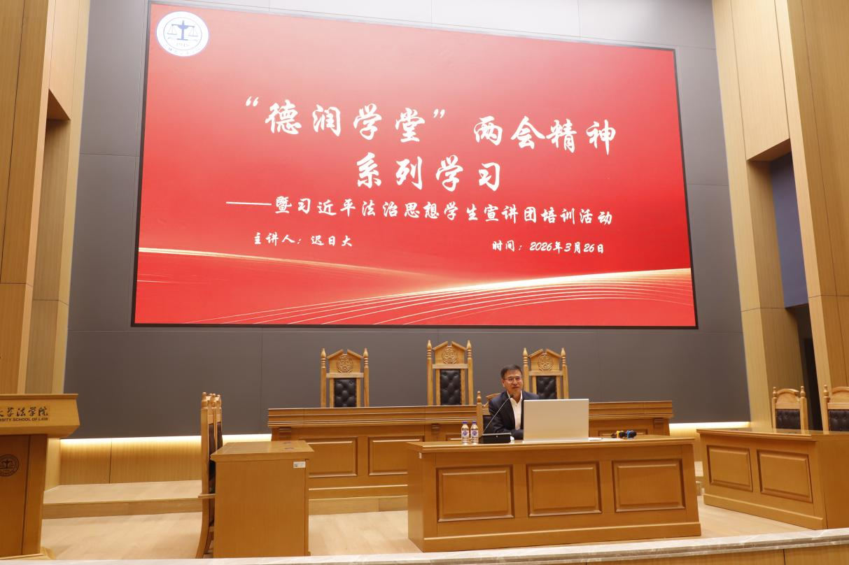 为深入学习贯彻2026年全国两会精神,准确把握新时代法治人才培养方向,推动习近平法治思想学习走深走实,吉林大学法学院“德润学堂”于2026年3月23日至4月8日,成功举办两会精神系列学习暨习近平法治思想学生宣讲团培训活动。本次活动吸引全院400余名学子积极参与,旨在通过“总分结合、学思践悟”的模式,引导法科学子将个人成长融入国家发展大局。