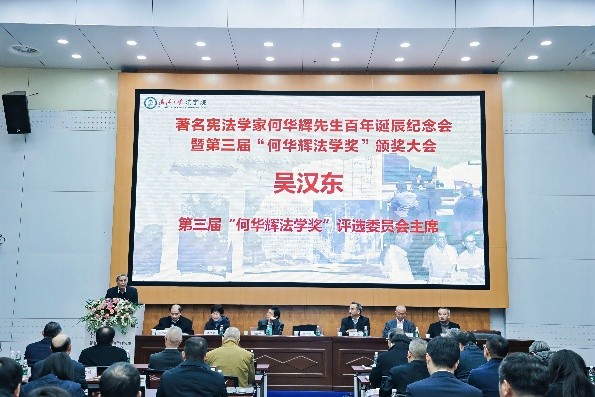 2025年12月14日,著名宪法学家何华辉先生百年诞辰纪念会暨第三届“何华辉法学奖”颁奖仪式在武汉大学法学院隆重举行。开幕式由武汉大学法学院院长秦天宝教授主持,武汉大学党委书记朱孔军教授,中国法学会宪法学研究会会长郑淑娜,第十四届全国政协常委、最高人民法院副院长陶凯元,上海市高级人民法院党组书记、院长贾宇,湖北省高级人民法院党组书记、院长游劝荣,武汉大学人文社科资深教授黄进以及何华辉先生夫人赵宗荃老师,何华辉先生弟子代表、武汉大学人文社科资深教授周叶中先后致辞、发言。