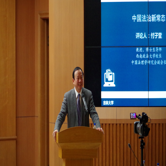 2015年12月4号下午3点,由中国法学会副会长、学术委员会主任、国家司法文明协同创新中心理事长、吉林大学资深教授张文显主讲,西南政法大学校长、中国法理学研究会副会长付子堂教授点评的“中国法治新常态”讲座于三教五阶进行,吉林大学法学院院长蔡立东教授、法学院党委书记李洪明研究员、法学院副院长李建华教授、任喜荣教授及徐岱教授等人前来参加讲座。法学院各级学生积极参与讲座,全场座无虚席、气氛热烈。