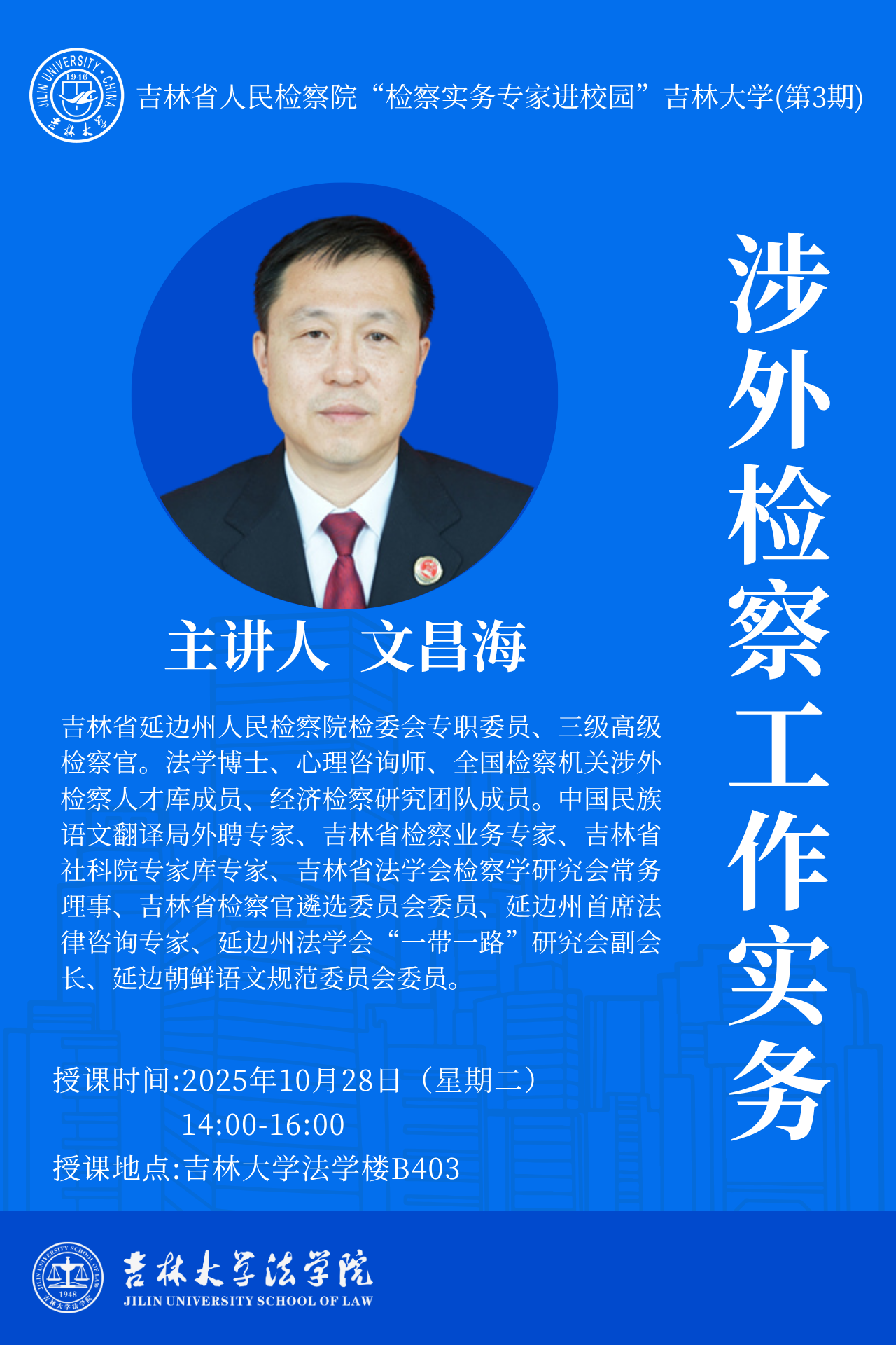 上一篇:中南财经政法大学陈实教授做客吉大法学学术茶座 下一篇:吉林省人民检察院“检察实务专家进校园”第2期开讲—新型隐性受贿犯罪疑难案例研讨