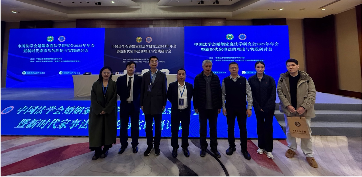 2025年11月8日至9日,由中国法学会婚姻家庭法学研究会主办、中华女子学院法学院(中国妇女儿童权益保障研究院)承办的中国法学会婚姻家庭法学研究会2025年年会在北京市召开。我院李洪祥教授、曹险峰教授、曹相见教授、刘国栋副教授以及马佳悦博士研究生、冯陵升博士研究生出席了会议